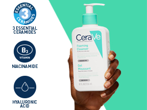CeraVe Foaming Facial Cleanser for normal to oily skin. Deeply cleanses, removes oil, refreshes. Ceramides, hyaluronic acid, niacinamide restore barrier, hydrate, calm skin. Non-stripping.